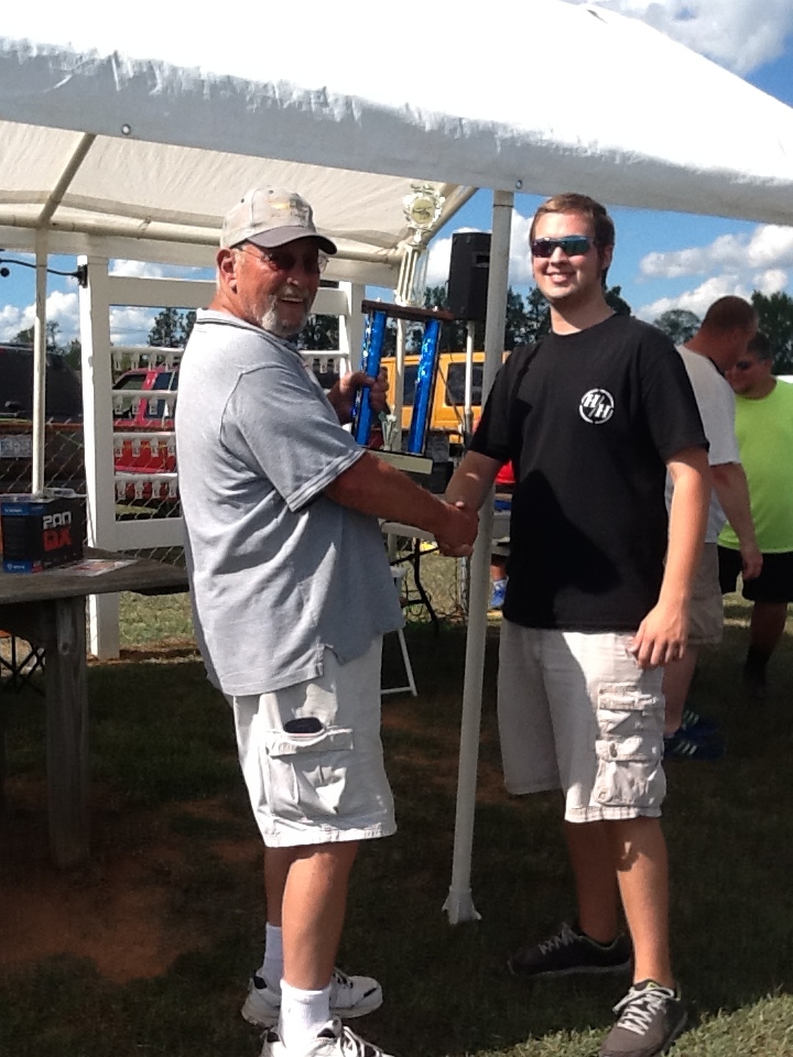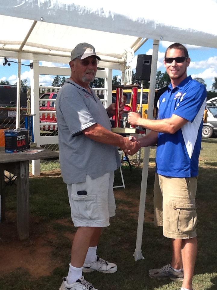 #1: Contest Director Doug Hughes presents the Drag Race trophy to winner Paul Peffly.