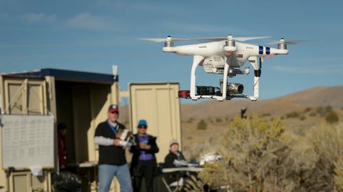 Drone Co-habitation Services operates a Phantom 3 commercial drone, one of 11 vehicles in the NASA field demonstration in Nevada. (Dominic Hart / NASA Ames)