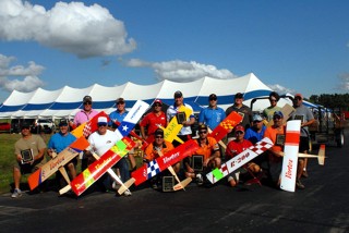 The 2015 Super Sport Quickee National Champion, Marcus Blanchard (front row, center) and the rest of the top ten at the 2105 AMA Pylon NATS. Photo by Bob Hunt
