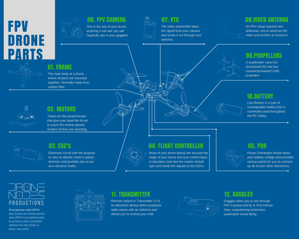 You can click on the following FPV Drone Parts image and zoom in for further details: