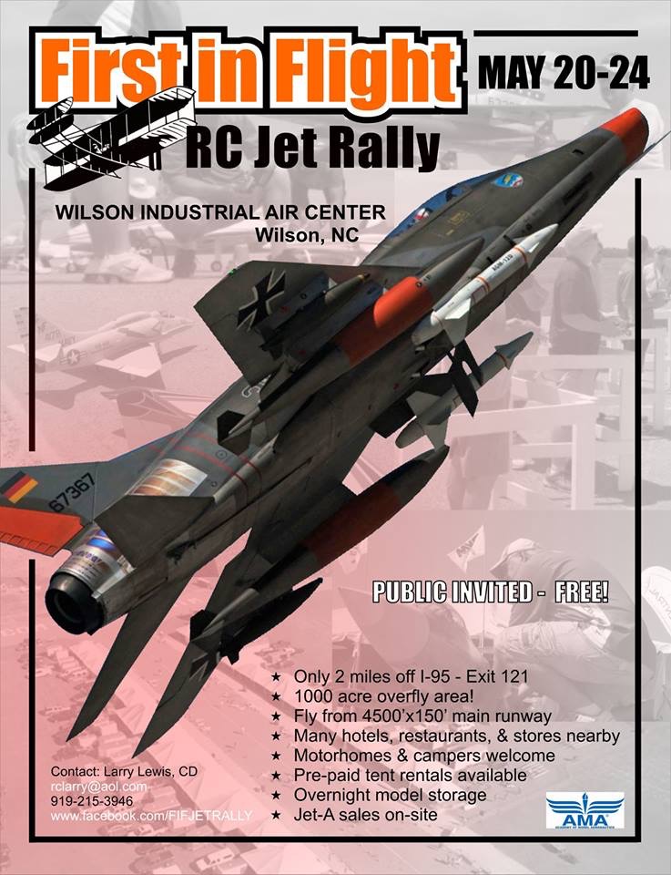 May is a busy month for big RC events and one more to add to the list is the fantastic “First in Flight” RC Jet Rally in Wilson, NC. This large and exciting event draws pilots from across the country to the Wilson Industrial Air Center, which has gained the reputation for being a remarkable venue for such a gathering. Jets are flown from the 4500 x 150 foot main runway over the expansive airport grounds that almost makes it a dream experience for the participants. With full support of the City of Wilson and the airport management, event organizers Larry Lewis and myself are given “carte blanche” to make it a safe and memorable event for pilots and spectators alike!