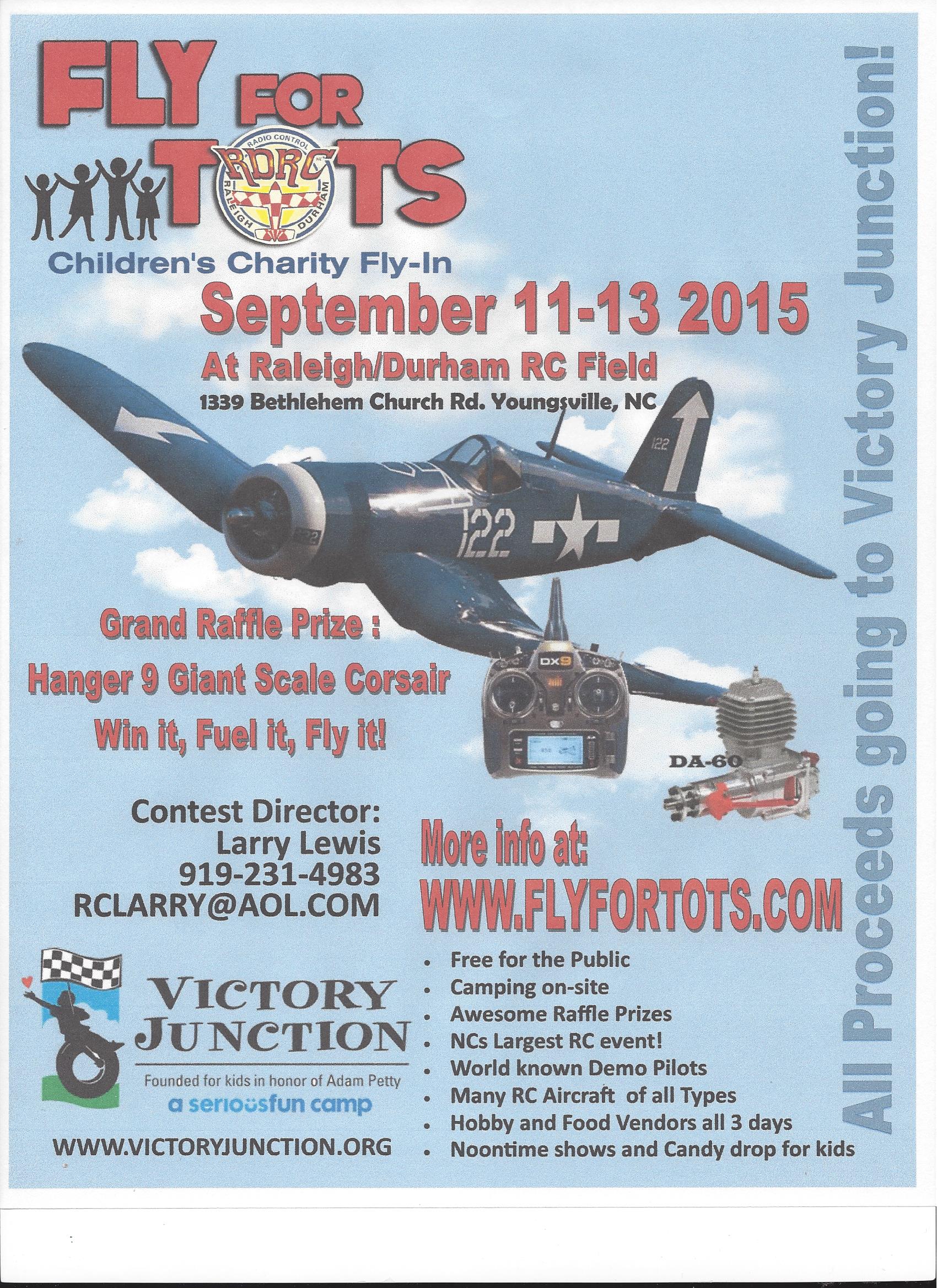 Fly For Tots September 11-13, 2015 by Rusty Kennedy | Jul 22, 2015 | Events | 0 comments North Carolina’s largest RC event WWW.FLYFORTOTS.COM