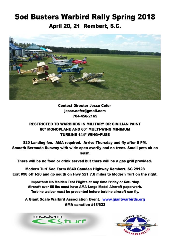Sodbusters Spring Warbird Rally is finally set for Friday and Saturday, April 20th and 21st. We will be setting up the field as usual on Thursday and should be able to get some flying in late in the afternoon.