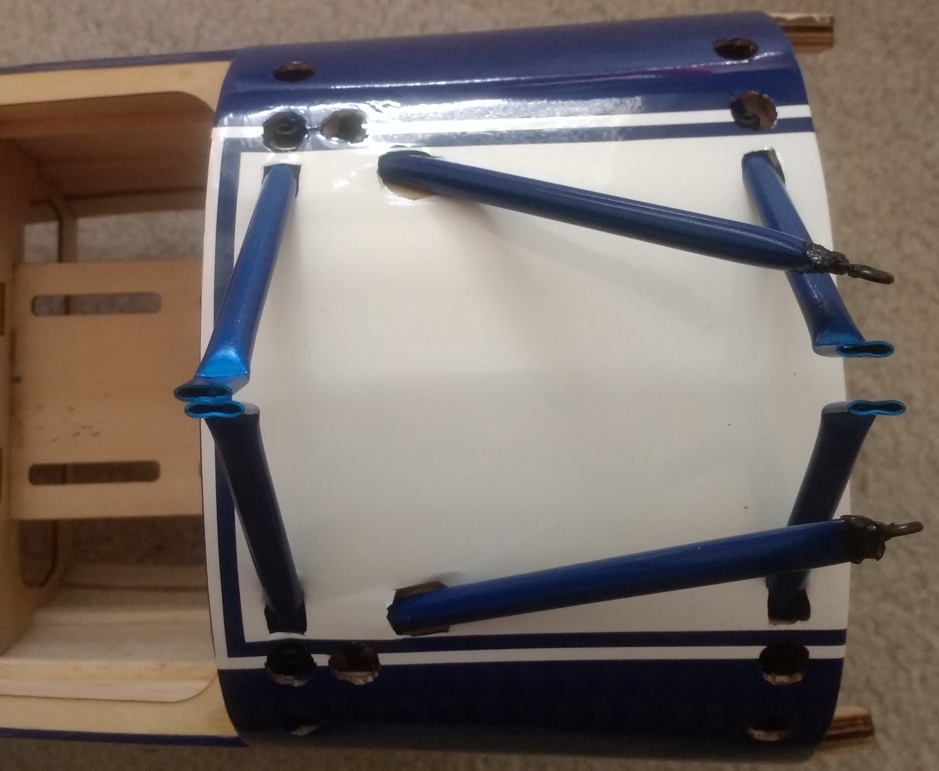 Line up the cross struts and tac glue them in place before inserting epoxy into the clamped ends.