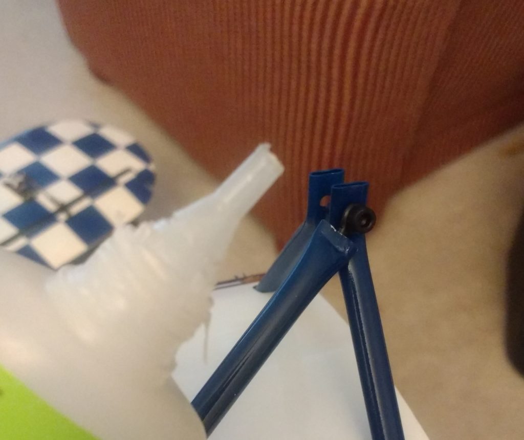 After assembling the landing gear suspension assembly they are attached to the bottom of the fuselage.