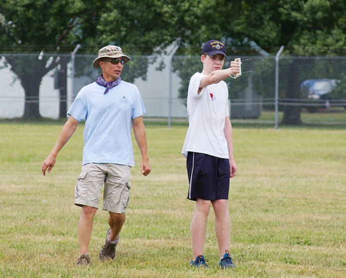 We started by getting Bill Sequira in the circle with Garrett to explain what the stunt pattern is supposed to look like. Later on John Tate could tell from outside the circle that Garrett was getting more and more confident at the handle. We even got Garrett to fly a 1/2A powered model just to see how he dealt getting dizzy. Garrett did very well flying both models today.